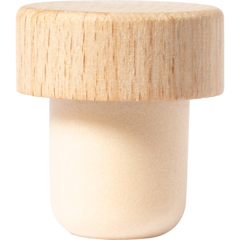 Vinprop af træ. Mærkning kan enten laves med 1-trykfarve eller lasergravering.
