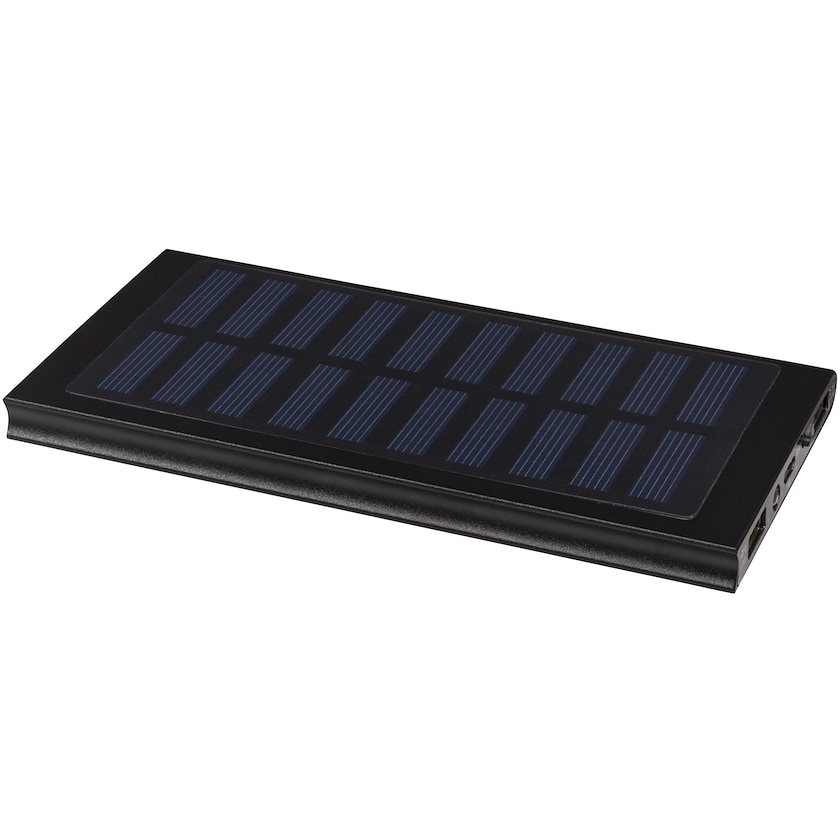Soldreven powerbank med indbygget LED-lampe. Powerbanken er forsynet med litiumpolymerbatteri og har et solpanel i krystal. LED-lampen tændes ved at man trykker to gange på strømafbryderen. Mikro-USB-kabel følger med.