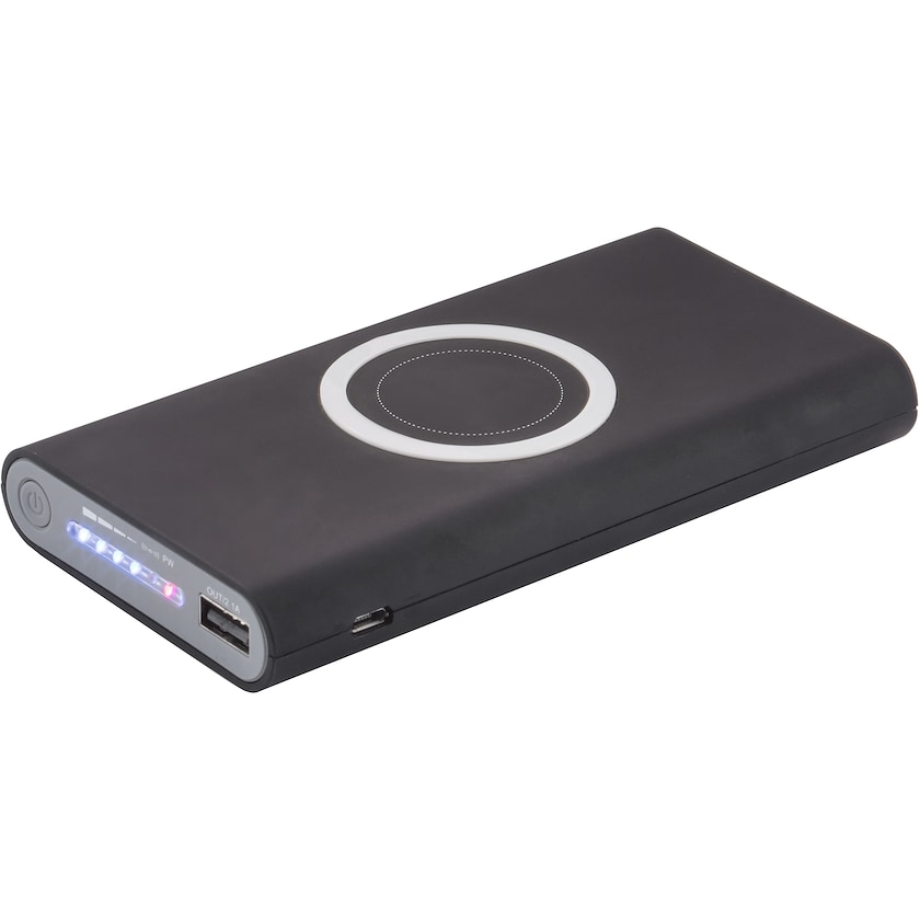 Ekstrem kraftfuld powerbank med trådløs opladning. Udover den trådløse opladning kan opladning derudover også ske via micro USB kabel eller USB-C udgang. Input: 5V/2.1A, output: 5V/2.1A.