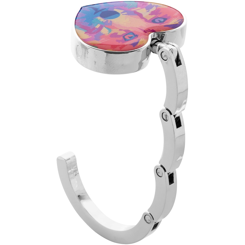 Hjerteformet taskekrog med digitaltryk Trykket placeres under en beskyttende overflade hvilket giver et eksklusivt udssende. Når taskekrogen ikke anvendes holdes den sammen med hjælp fra en magnet. Leveres i en sort gaveæske.