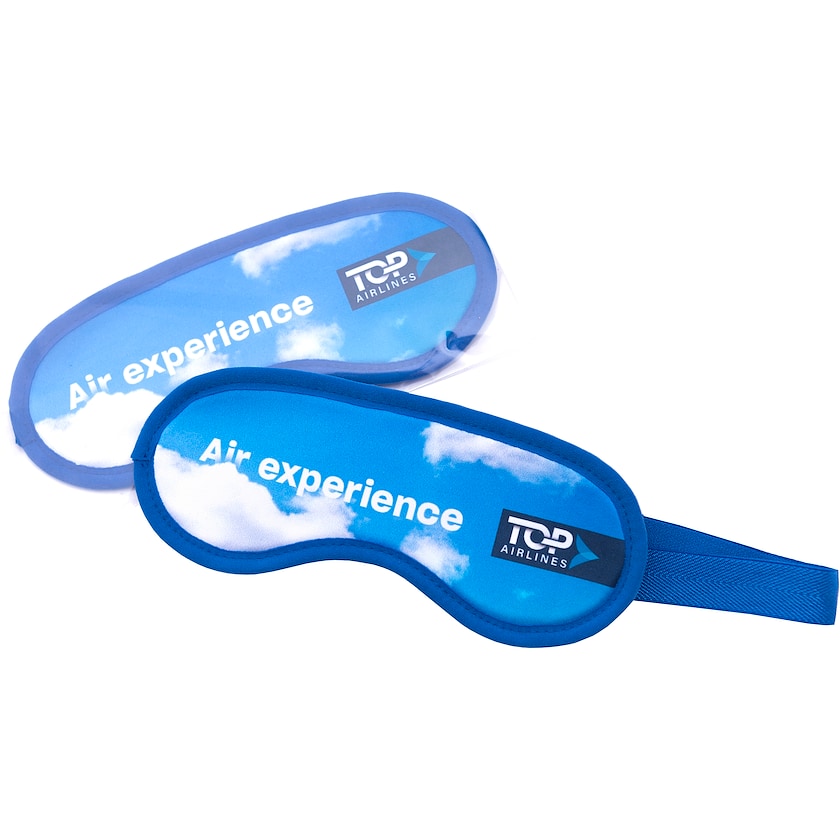 Sovemaske med digitaltrykt forside. Macao er fremstillet af blødt mikrofiber og leveres i en smart opbevaringspose. Mikrofiber-kanten samt elastikbåndet fås i flere forskellige pantonefarver (se billede). Design din helt egen sovemaske! En perfekt reklameartikel til rejsebureauer.