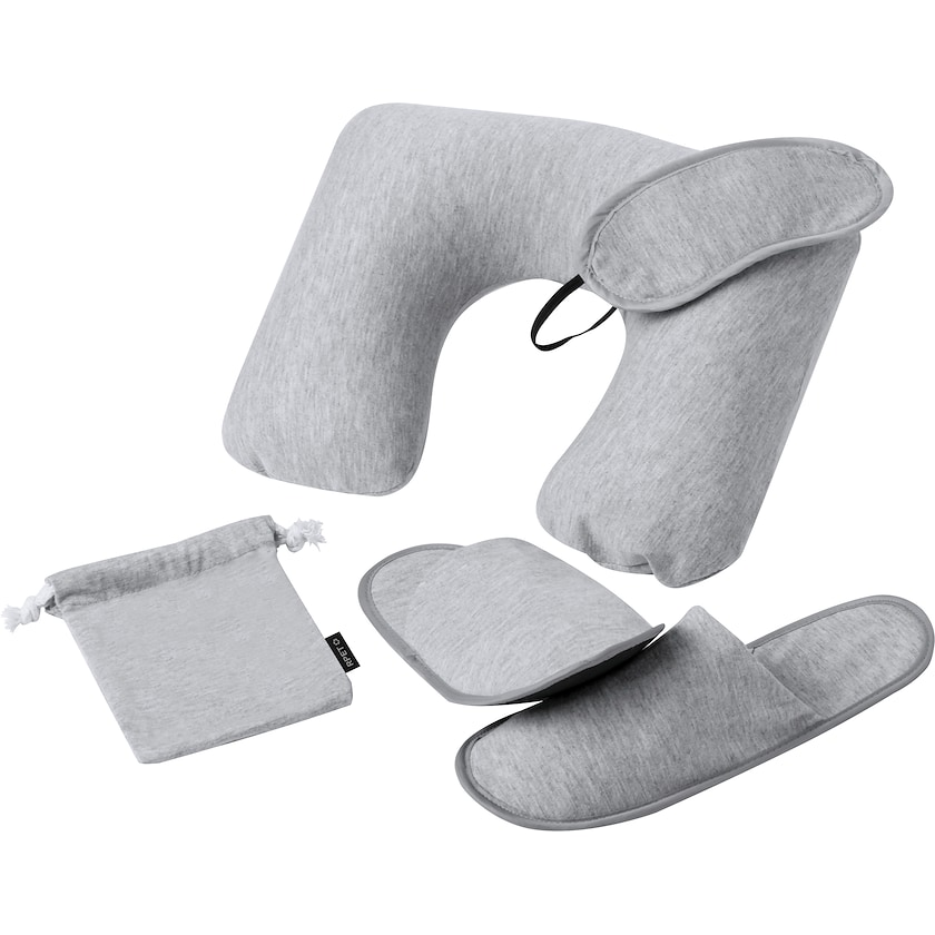 Rejsesæt med alt for en behagelig rejse. Tøflerne er af typen one-size-fits all og passer til fødder i størrelserne 36 til 43.
