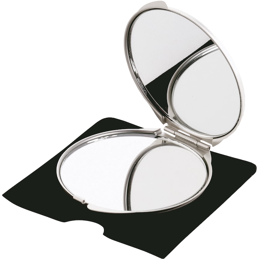 Make-up spejl med både almindelig og forstørrende spejl. Angelina er lavet i aluminium og leveres i et sort fløjlspose. Mærning sker med lasergravering.