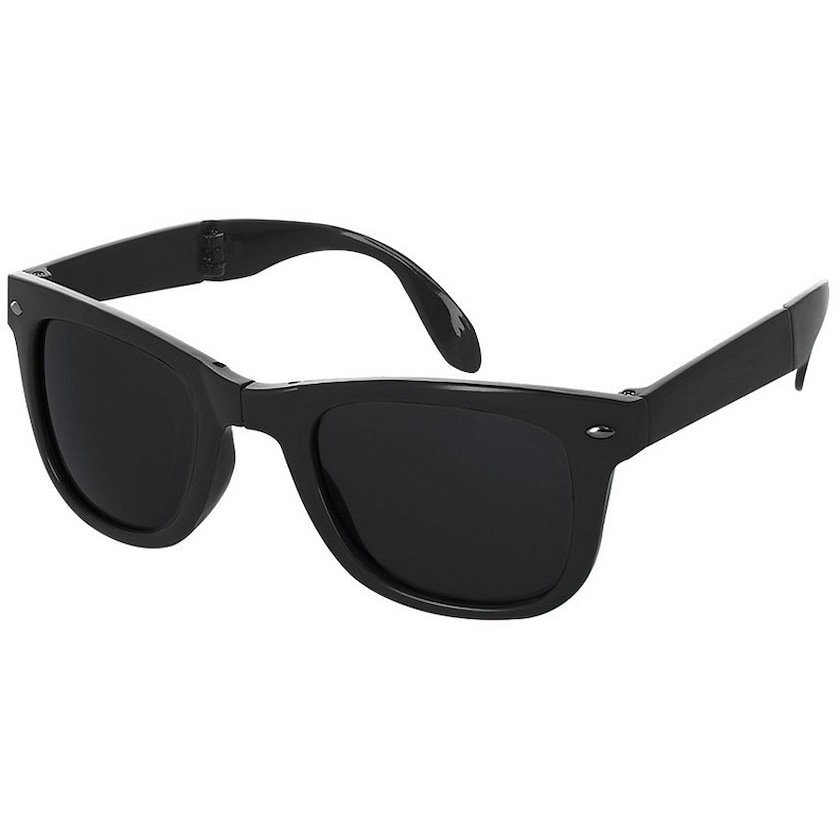 Foldbare ensfarvet solbriller med eget logo. Linserne er med UV400-beskyttelse. Leveret i et brilleetui med lynlås.
