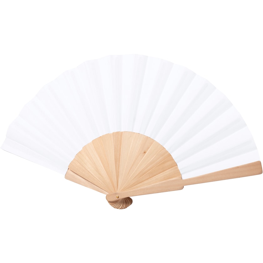Miljøvenlig vifte. Viften er fremstillet af genanvendte PET-flasker samt bambus. En sommerfavorit der samtidig er et godt miljøvalg. Mærkning laves på bambusribbens ene side.