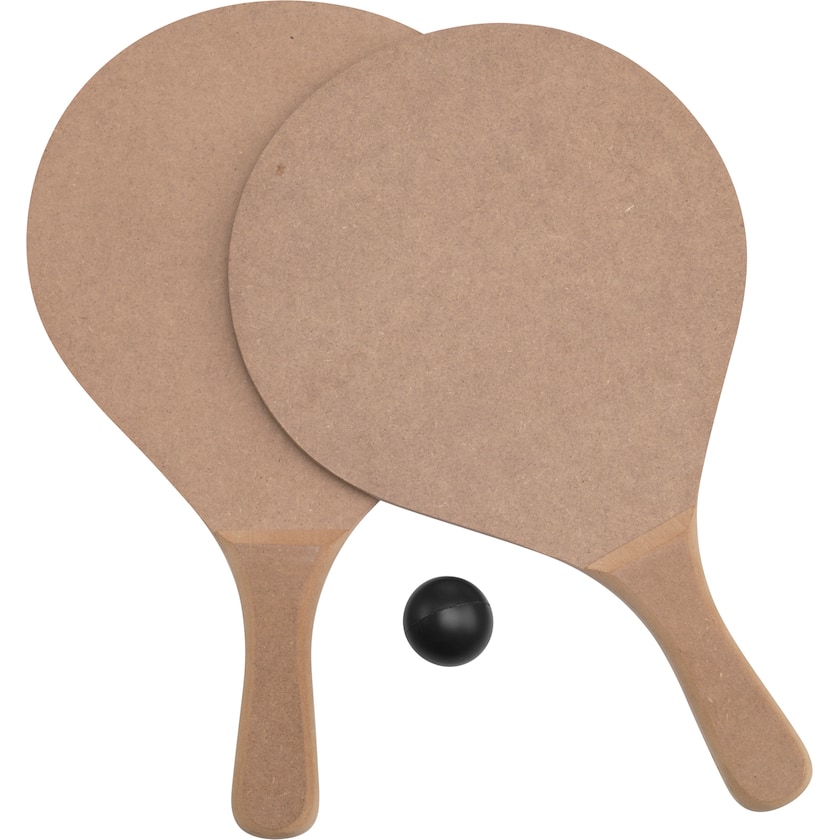 Sæt med to strandtennisketsjere og en gummibold. Leveres i en opbevaringspose af bomuld. Trykprisen henviser til tryk på begge ketsjere.