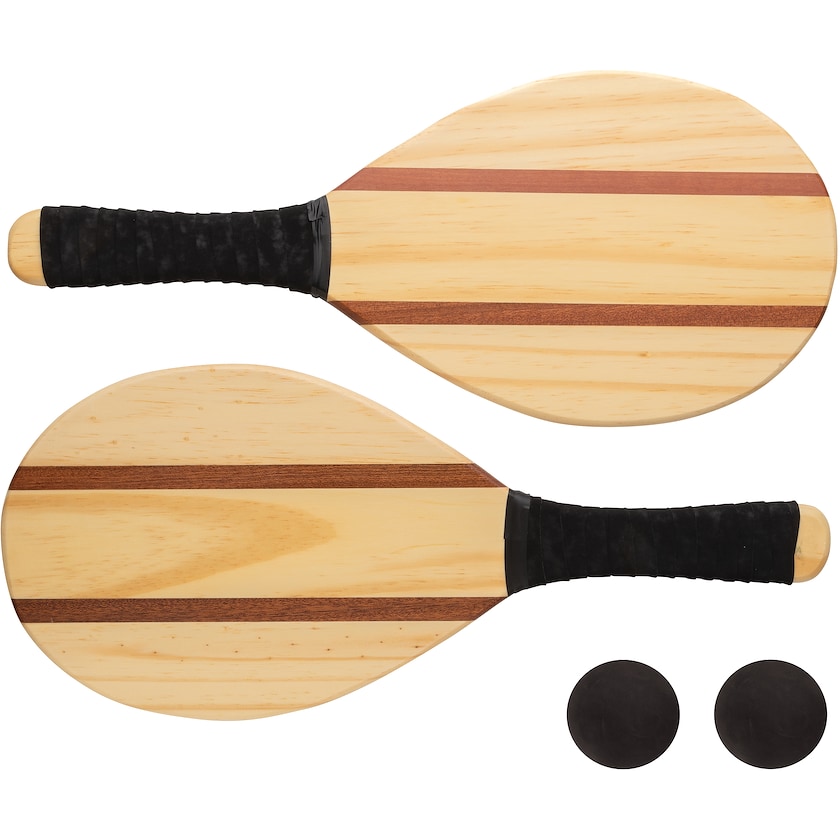 Højkvalitets strandtennissæt i træ. Whitby er lavet af fyrretræ med elementer af sabeltræ. To bolde og en opbevaringstaske lavet af bomuld medfølger. Leveres i stilfuld gaveemballage. Trykket laves på opbevaringstasken.
