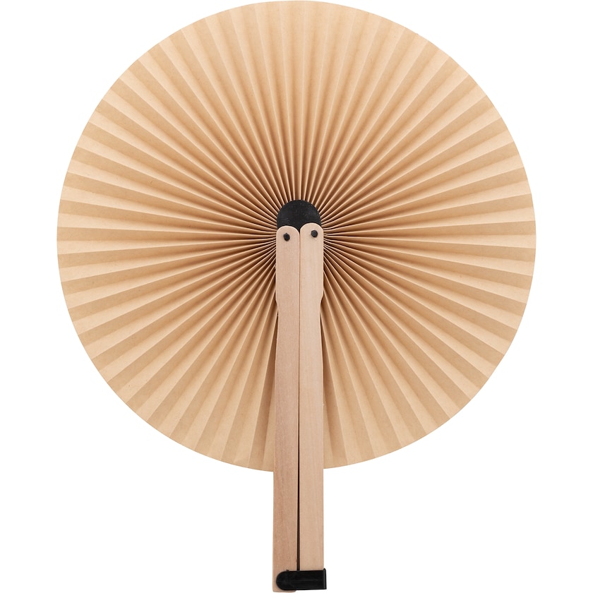 Vifte af naturfarvet papir og træ. Mærkning laves med tryk eller lasergravering.