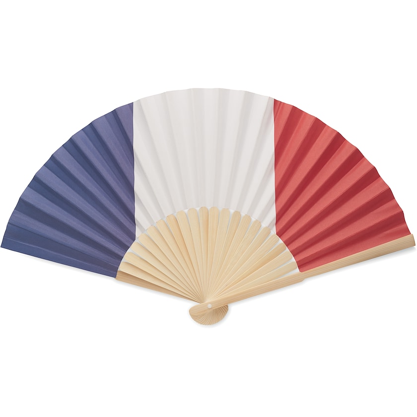 Vifte af bambus med nationalflag på papirstoffet. Et sjovt fan merchandise til når der er landskamp!