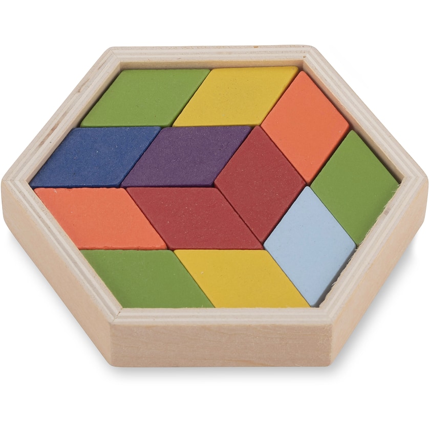 Træpuslespil som træner din kreativitet. Leveres i en bomuldspose. En flot gave til store og små.