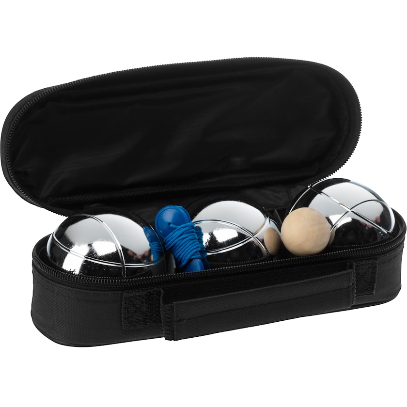 Boulesæt med tre kugler. Sættet kommer med en praktisk opbevaringstaske. Trykket laves på tasken.