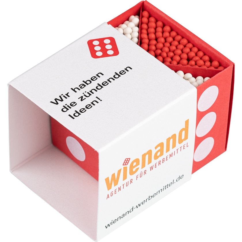 Stor tændstikæske med hele 200 stk. tændstikker. Tændstikkerne er opdelt i fire forskellige rum. Hele tændstikæsken trykkes efter dine ønsker. Du kan frit vælge mellem 16 forskellige knopfarver og 3 forskellige træfarver.