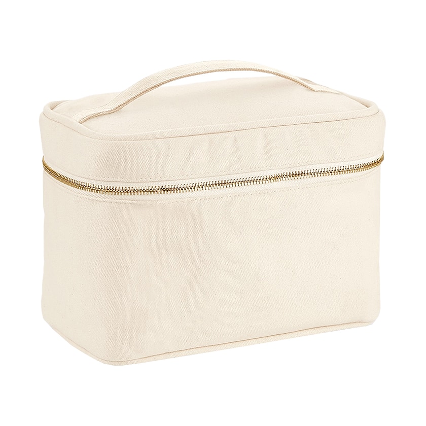 Stor toilettaske i kraftigt bomuld. Cortez har et hovedrum på 5 liter. Øverst findes et praktisk bærehåndtag. Et perfekt valg til dig som sæger en stor bomuldstoilettaske med tryk!
