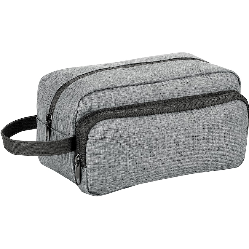 Fin Toilettaske med to seperate opbevaringsrum. På den ene side er der et bærehåndtag. Har en størrelse der passer til de fleste ture. Bestil toilettasker med dit eget tryk hos Axon Profil!
