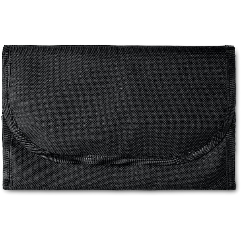 Toilettaske med logo med krog for ophængning. Vicenza har tre rum og kan foldes sammen når den ikke er i brug. En perfekt toilettaske til rejsen. Takket være den store trykflade er der godt med plads til dit tryk.