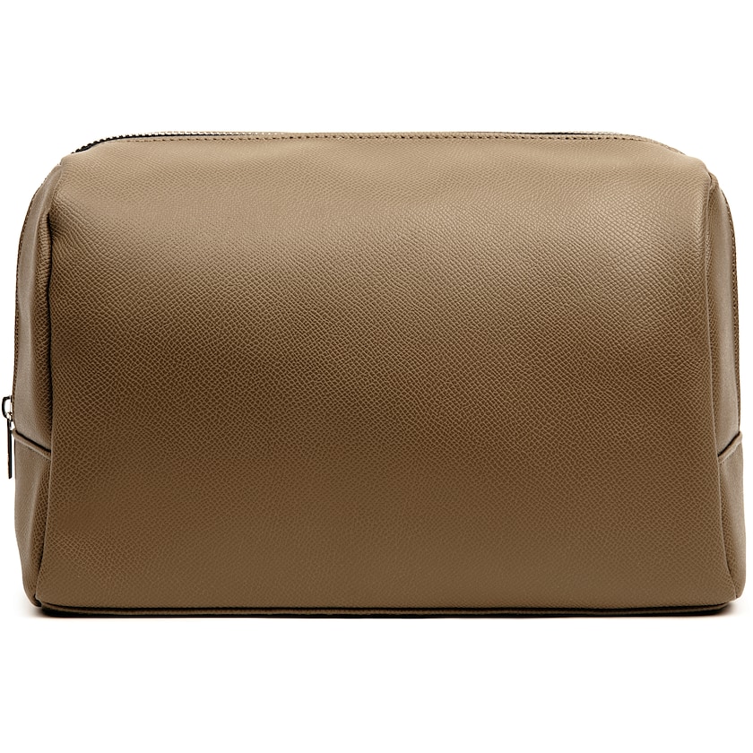 Tidløst designet toilettaske. Ydersiden er fremstillet af genanvendt kunstlæder. Pga. den lange lynlås er det nemt at komme ind til indholdet.