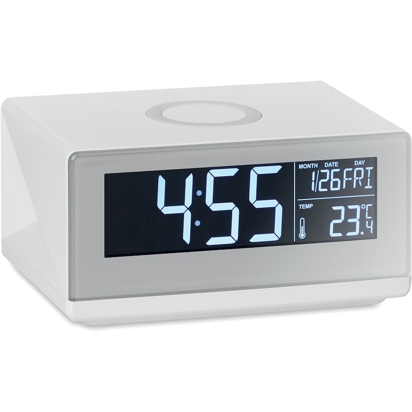 Trådløs oplader som også fungerer som vejrstation og vækkeur. Opladeren er kompatibel med alle de nyeste mobiltelefoner.