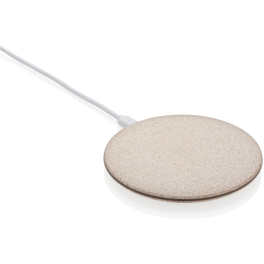 Miljøvenlig trådløs oplader som er produceret i 35% hvedefiber og 65% plast. En LED-indikator lyser op når enheden lader. Kompatibel med alle QI-aktiverede enheden som f.eks. den seneste generation Andriod, iPhone 8 og nyere.
