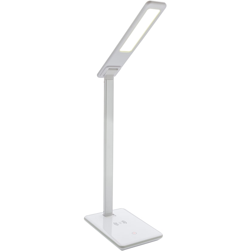 Trådløs oplader kombineret med skrivebordslampe. Mobiltelefonen oplades enkelt ved at lægge på lampens base. Opladningen kan også ske via kabel. 150 cm microkabel medfølger. Input: 5V/2A. USB output: 5V/1A. Trådløs output: 5V/1A 5W.