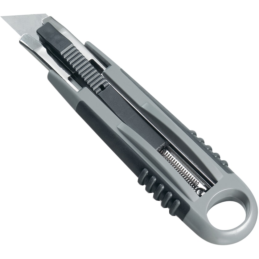 Højkvalitets hobbykniv med bløde detaljer i gummi. Automatisk tilbagetrækning af bladet.