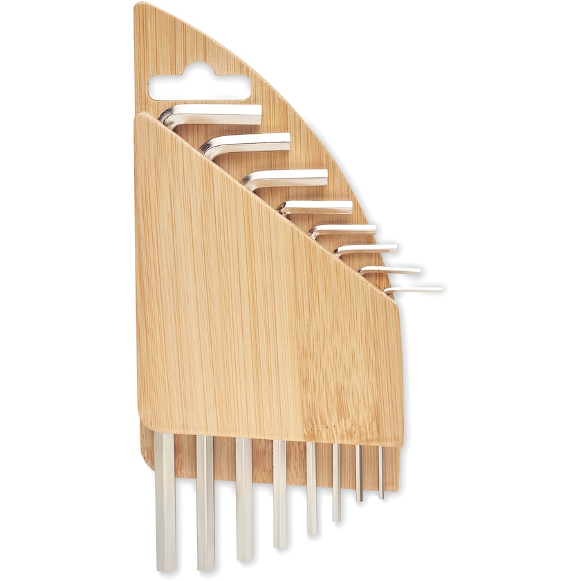 Sæt med 8 stk. unbrakonøgler. Sættet leveres i en opbevaringsæske af bambus. Mærkning laves enten med tryk eller lasergravering. Et perfekt sæt for alle hjem!