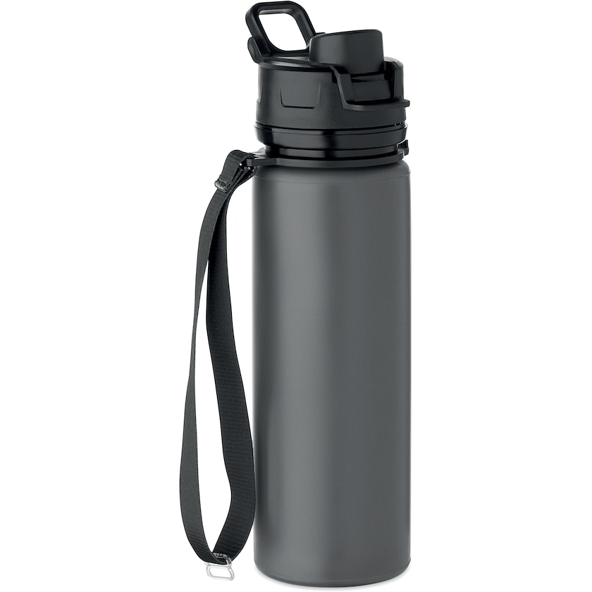 Foldbar drikkedunk af silikone. Acton er lækagetæt og forsynet med en bærerem. Når den ikke er i brug kan den foldes sammen. Trykket kan enten placeres på låget eller på bæreremmen.