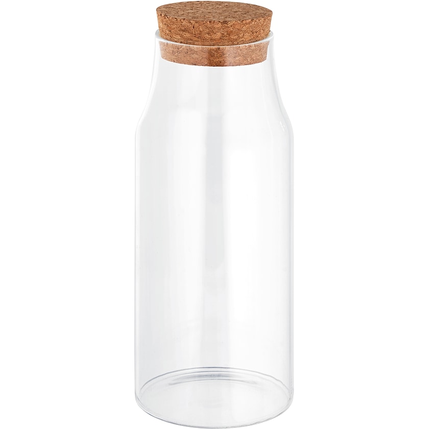 Glasflaske lavet af slidstærkt borosilikat. Låget er lavet af ægte kork. Leveres i en gaveemballage af naturfarvet papir.