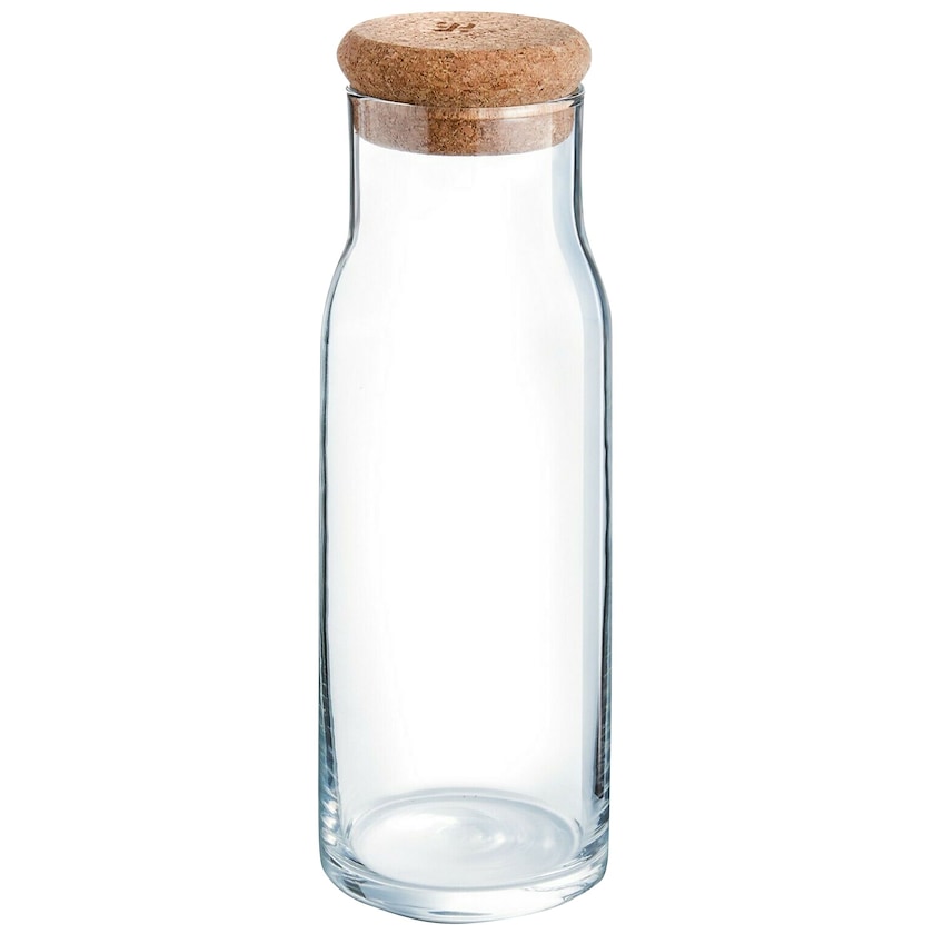 Flot glaskaraffel med låg af kork. Perfekt til fx vand, juice eller alkoholiske drikkevarer. Ved 1-trykfarve er trykfladen på hele 200 x 90 mm.