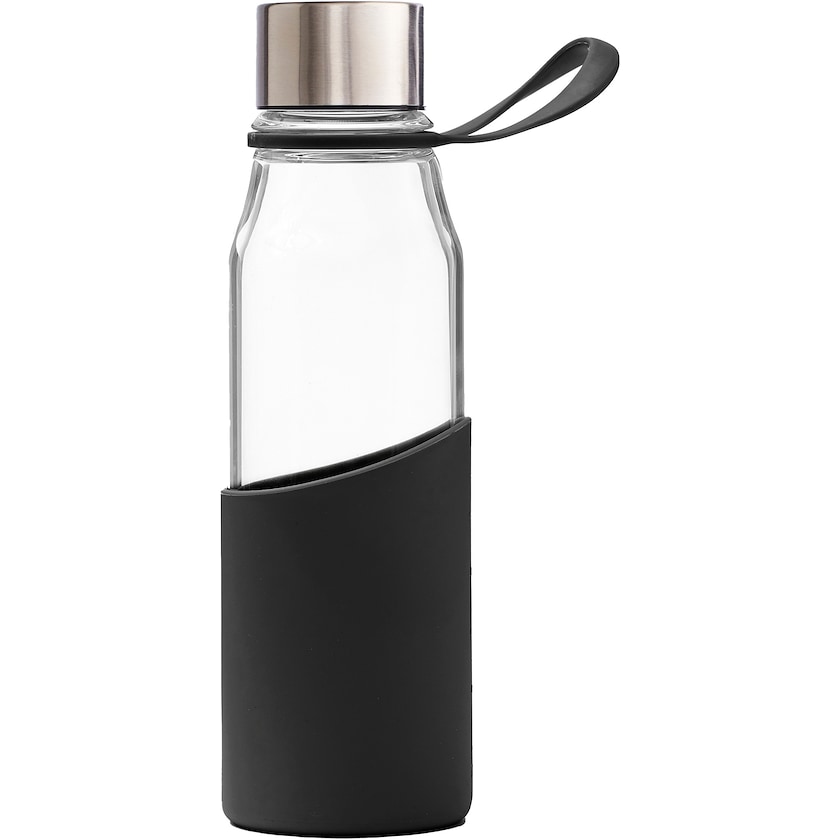 Smuk glasflaske med bund af silikone. Glasset er af typen borsilikatglas og er meget solidt. Flaskens silikonebund giver yderlige stødsikkerhed samt giver et godt greb. Tåler at gå i opvaskemaskinen.