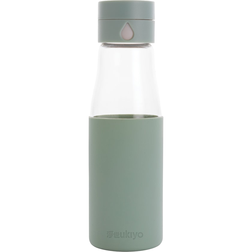 Veldesignet glasflaske med greb i silikone. Låget har en sjov funktion, hvor vanddråben bliver større for hver gang flasken fyldes. Glasset er ildfast og dermed meget holdbart. Flasken er lækagesikker. Registreret design®.