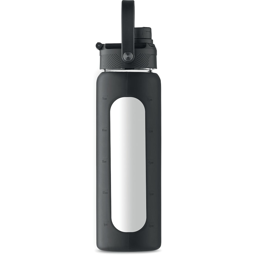 Eksklusiv drikkedunk i solid borosilikatglas og silikone. Lækagefri. Låget har et bærehåndtag.