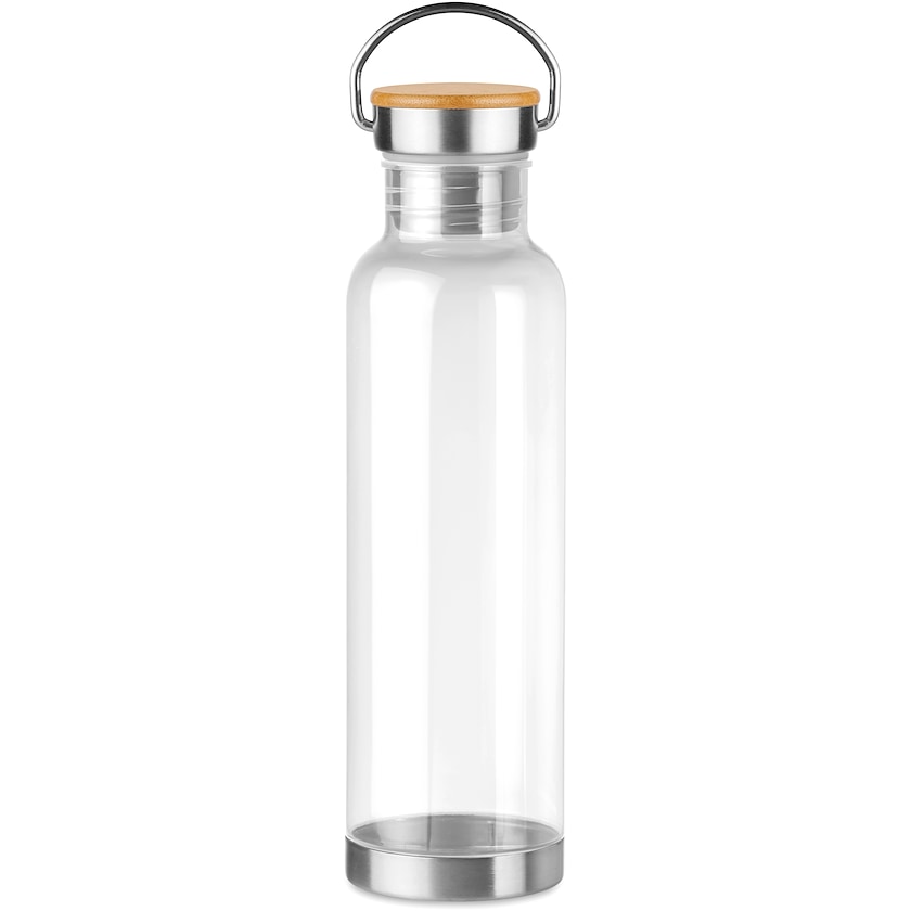 Eksklusiv drikkedunk a tritan. Flasken har bund af rustfrit stål samt låg af rustfrit stål og bambus. En eksklusiv drikkedunk til dig der søger en flaske af høj kvalitet. Kun 1-trykfarve er mulig.