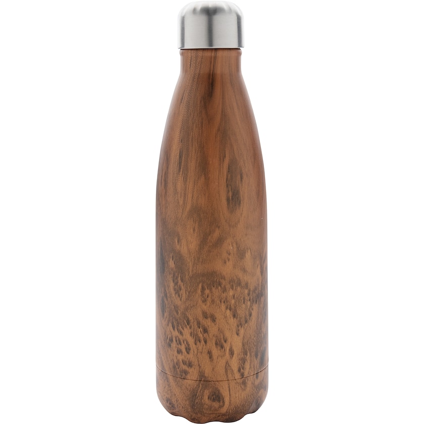 Ståltermoflaske med effektfuldt trætryk over hele overfladen. Flasken holder drikkevaren kold i op til 15 timer og varme drikkevarer i op til 5 timer. En termoflaske som virkelig fanger blikket!
