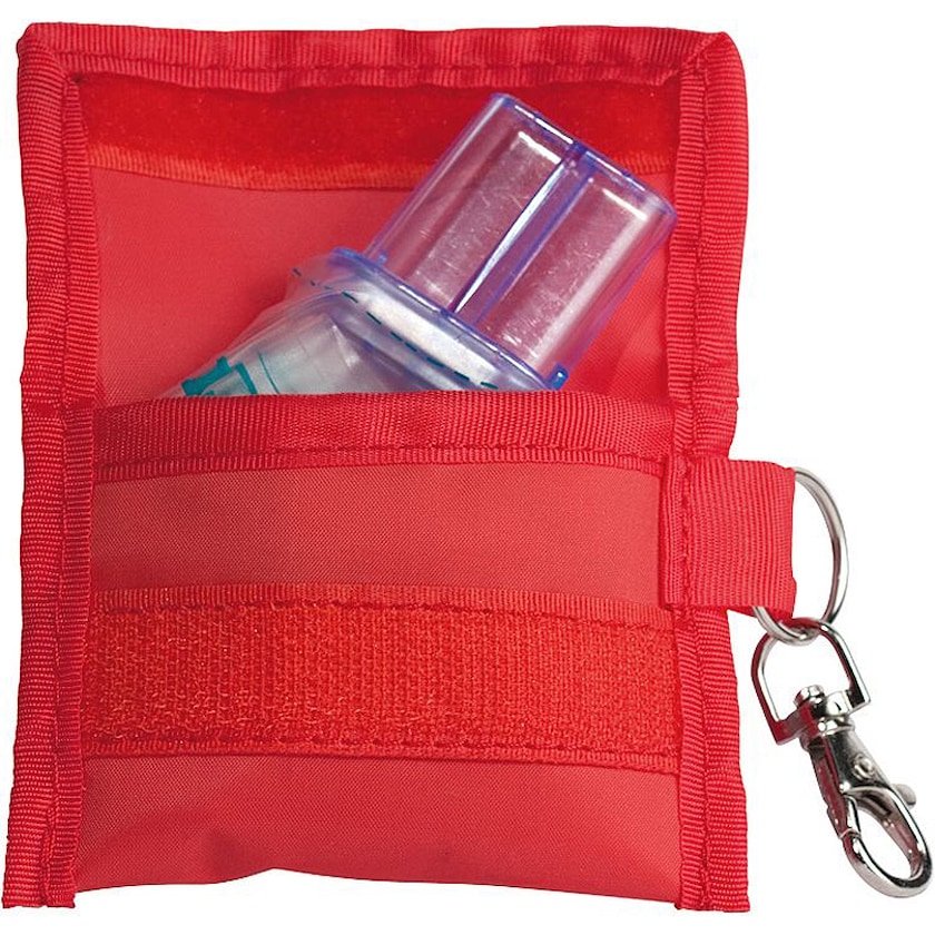Vejrtrækningsmaske til mund-til-mund. Beskytter mod berøring under brug. Leveres i et praktisk nylonetui med nøglering. Trykket er på nylonlommen, og det er kun muligt med 1-farvestryk.