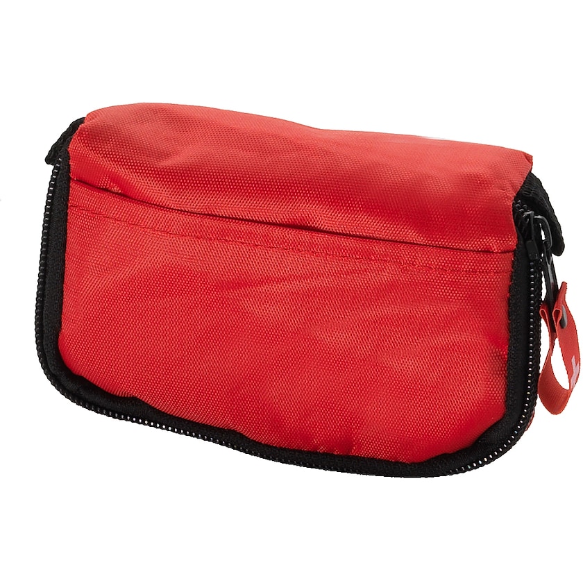 First Aid Kit. 5 Plasters, 4 alcohol pads, bandage, triangle bandage, 2 safety pins, 5 gauzes and scissors in nylon pouch. 70D nylon
