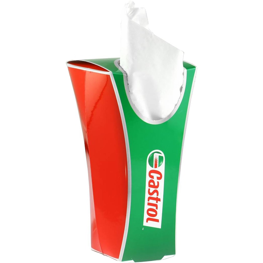 Servietæske til bilen. Æsken er fremstillet af pap og indeholder 50 stk. servietter. Servietterne har to lag og er fremstillet af cellulose. Hele papæsken trykkes efter dine ønsker.
