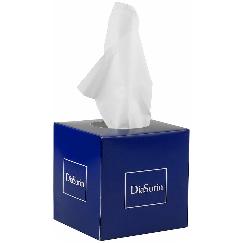 Kubeformet papæske med 100 stk. servietter. Servietterne er fremstillet af cellulose og består af to lag. Hele papæsken trykkes efter dine instruktioner.