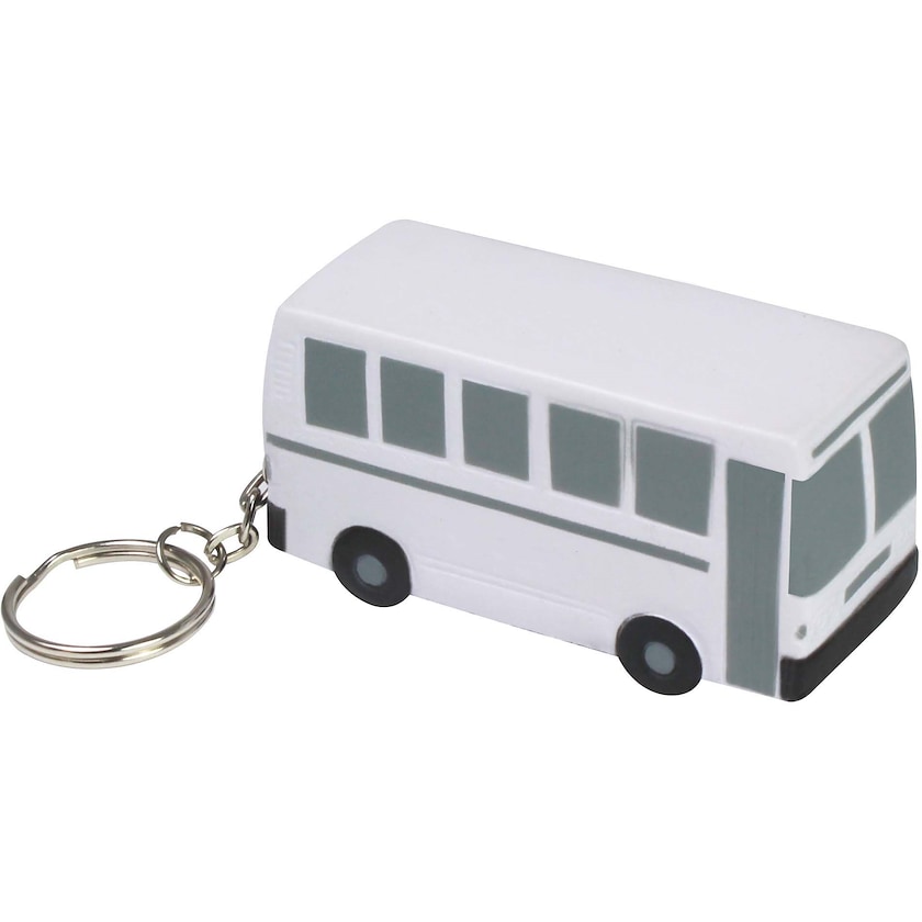 Stressbold formet som en bus forsynet med en nøglering. Trykket er af bedste kvalitet hvilket gør at trykket stadig sidder på efter lang tids anvendelse.