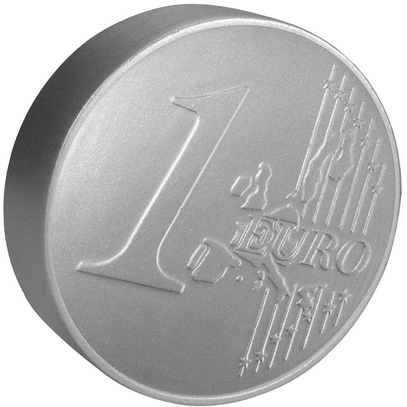 Stressbold i form af 1-euromønt. Trykket laves på møntens bagside.