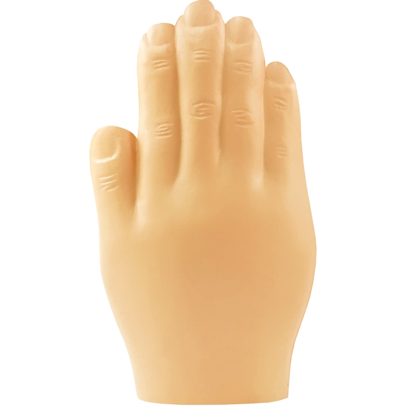 Stressbold med logo formet som en hånd. Trykket holder topkvalitet og bliver siddende på under hele stressboldens levetid.