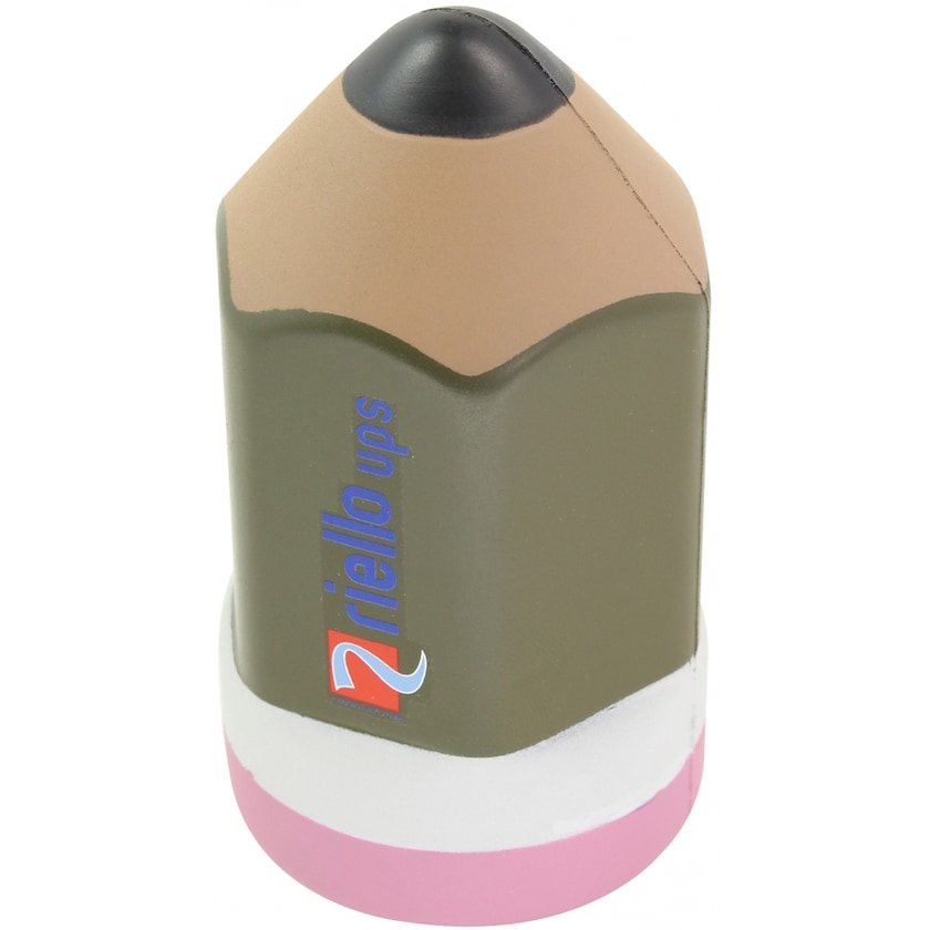 Stressbold med logo designet som en blyant. Man kan ikke skrive med den men den er perfekt til afstresning. Trykket holder topklasse.
