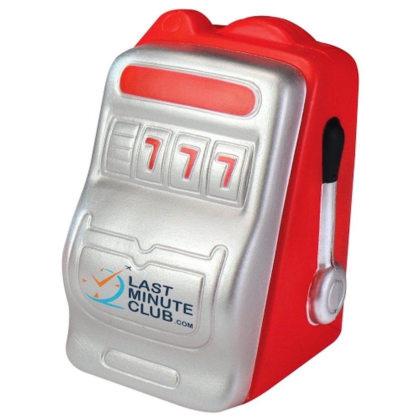 En stressbold i for af en spilleautomat. Perfekt til spilfirmaer. Trykket er af høj kvalitet og tåler langtidsbrug.