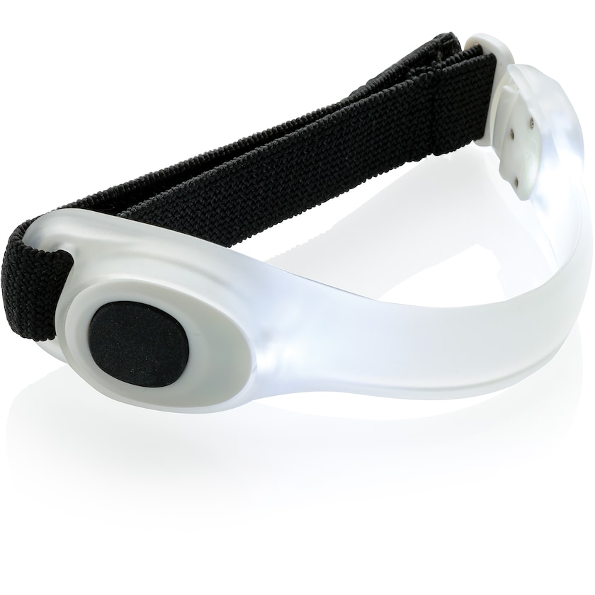 Løbelygte som fæstnes på armen. Løbelygten sidder behageligt på armen og sørger for at du er synlig selv når det er mørkt udenfor. Trykket kan laves i maksimalt to farver.