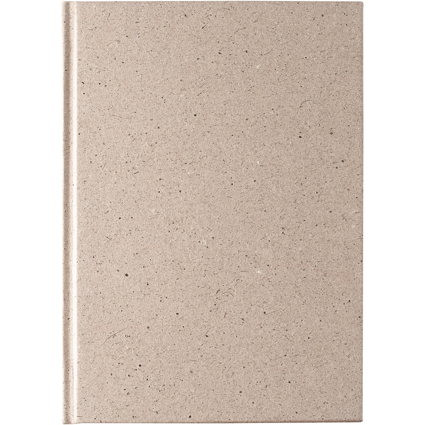 Notesbog med hårdt omslag i genanvendt teblade. Indlæg består af 60 linjerede ark af genbrugsbomuld. Fremstillingen af denne notesbog har ikke krævet kemikalier og der der har heller ikke været nogle restprodukter.