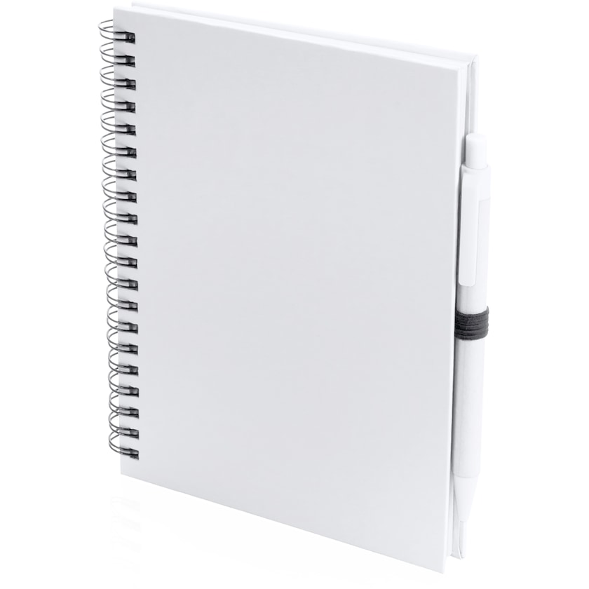 Miljøvenlig spiralbog i A5-format med kuglepen i matchende farve. Spiralbogen har har 70 blanke sider af genbrugspapir og et omslag af kraftig pap. Trykket kan ske både på spiralbogen samt kuglepennen.