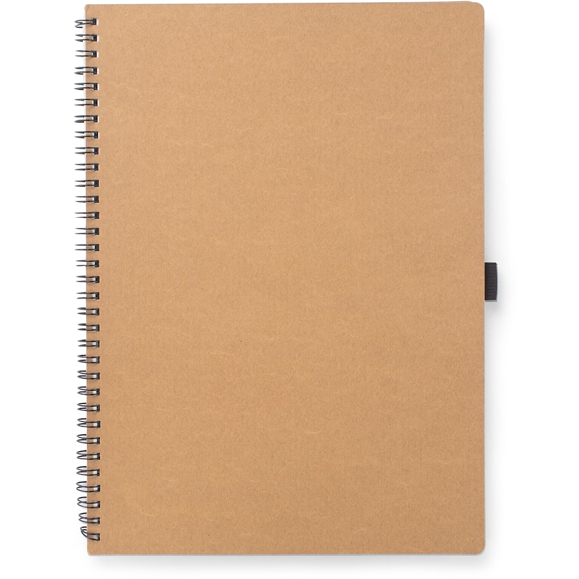 Miljøvenlig notesbog med indlæg i stenpapir. Spiral notesbogen Isla er forsynet med sort spiral og en elastisk penneholder. Stenpapir er et miljøvenligt papir som også er meget stærkt og solidt mod væske. Indlæg består af 60 linjeret ark. Omslaget er fremstillet af almindeligt papir. Leveres individuelt pakket i en biologisk nedbrydelig pose.