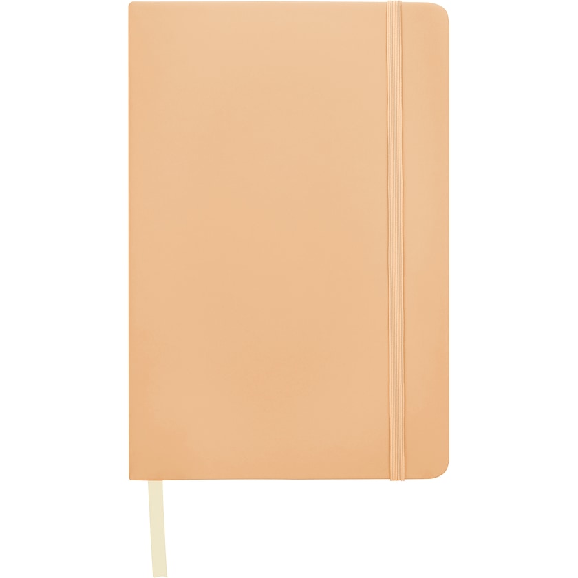 Notesbog i A5-format med omslag af kunstlæder. Notesbogen har 96 linjerede ark og elastikbånd i matchende farve. Hjørnerne er afrundede hvilket giver et elegant udseende. Hurtig leveringstid!