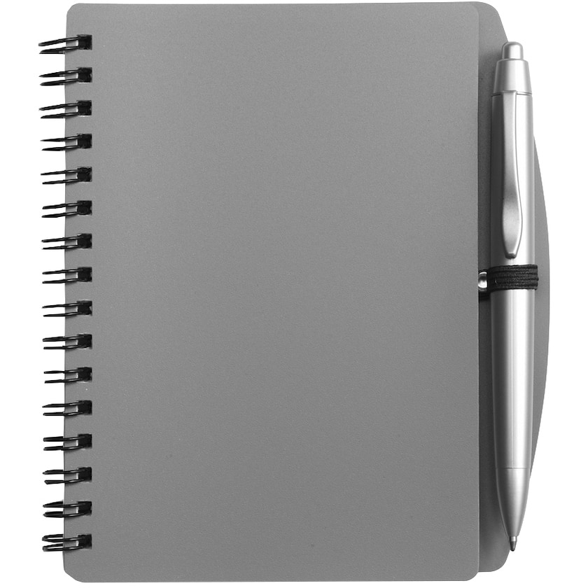 Notesbog størrelse A6 med matteret låg og medfølgende pen.