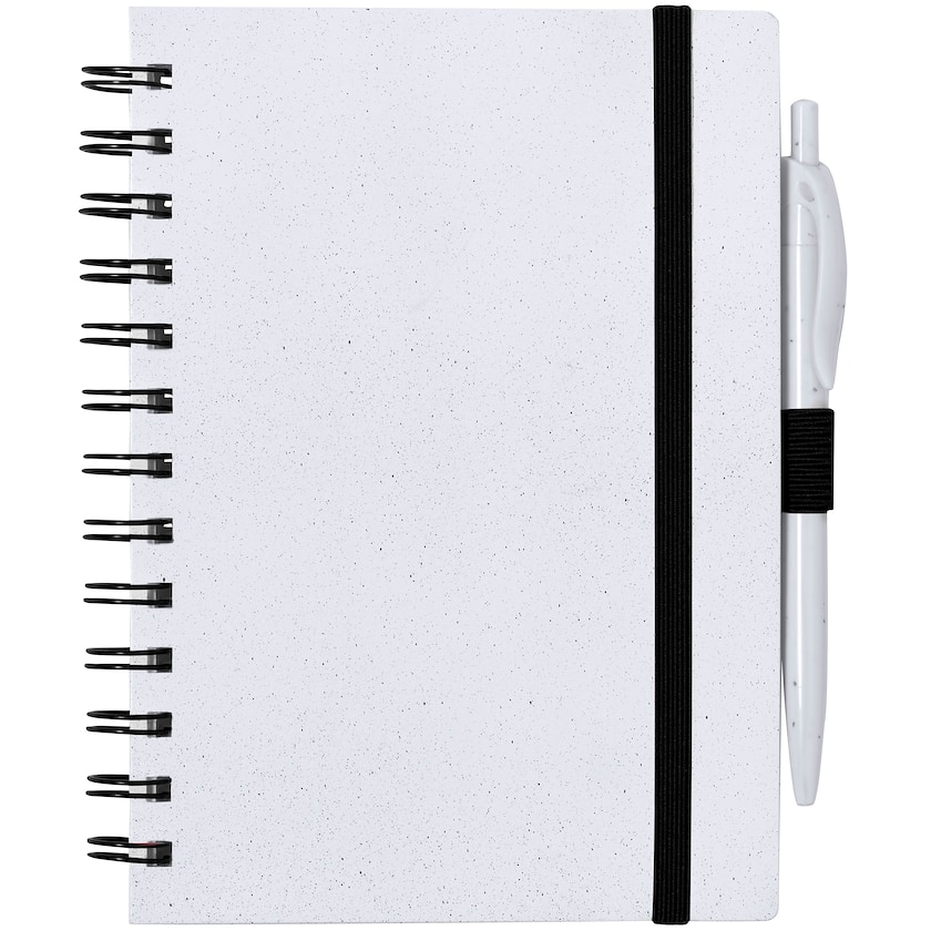 Notesbog af genbrugsmateriale. Omslaget er fremstillet af ABS og indlæg af 70 linjerede ark af genbrugspapir. Kuglepennen er også fremstillet af genbrugs ABS. Et miljøvenligt valg.
