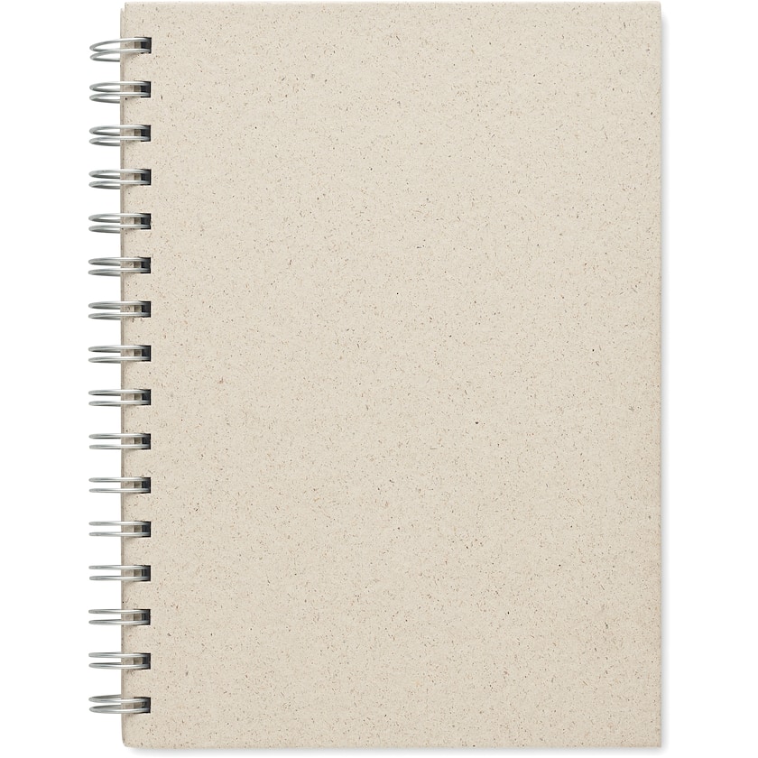 Miljøvenlig spiralblok som er fremstillet i EU. Spiralblokken indeholder 80 linjeret ark af miljøvenligt græspapir. Græspapiret er økologisk bæredygtigt og mere miljøvenligt end alm. papir. Omslaget er af ubehandlet karton.
